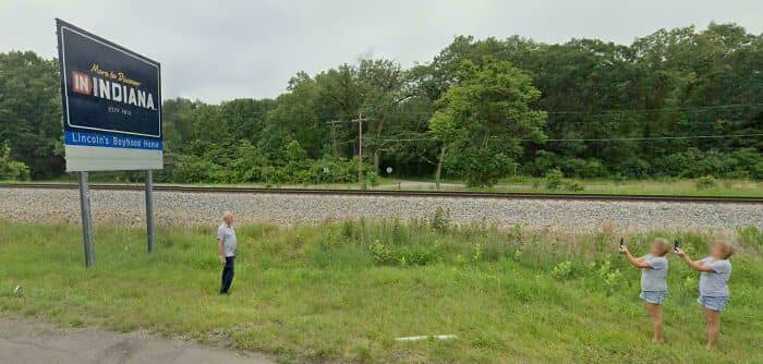 #57 Old People Taking A Picture At The Indiana-Michigan Border