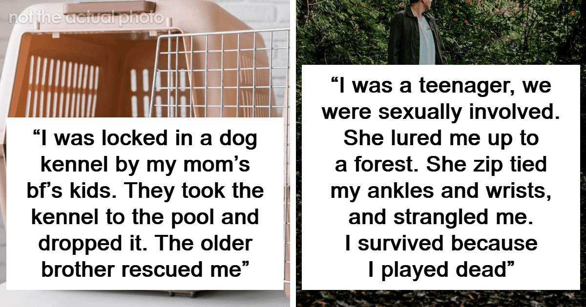 When I was 7 years old I was locked (master lock, key was with one of em) in a dog kennel I barely fit into by my mom’s bfs kids. They took the kennel out to the above ground pool and held it on the edge joking like they were going to drop it. They ended up doing just that and I was under in seconds. The plate at the bottom of the kennel made it hard for them to pull it back out so they had to turn it on its side and then pull it out. They didn’t bother setting me down though, they just dropped me. I remember the feeling of my hands crammed through the holes in the kennel with grass between them. I heard some arguing and what I assume was fighting, the old brother came to my rescue and let me out. I slept in his room for the rest of the summer till I went home to my dads.