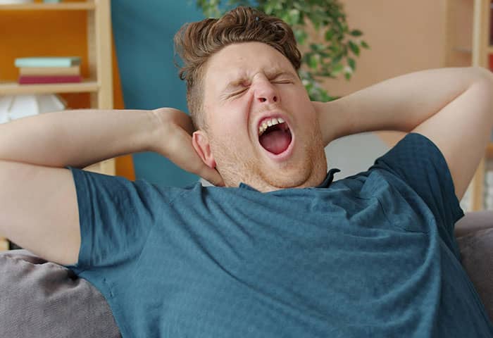 Saw him scrapping the fuzz off his dirty teeth and wipe it on his couch after not brushing his teeth all weekend.