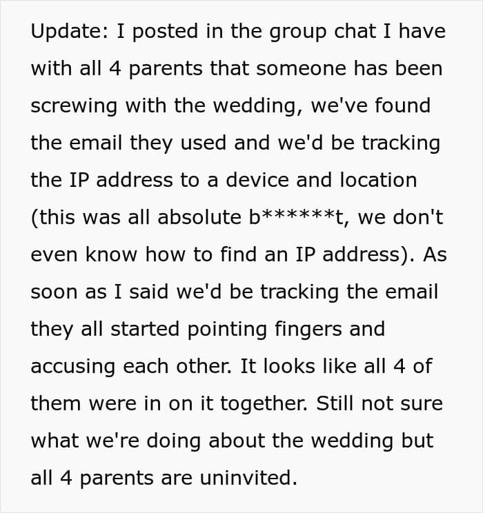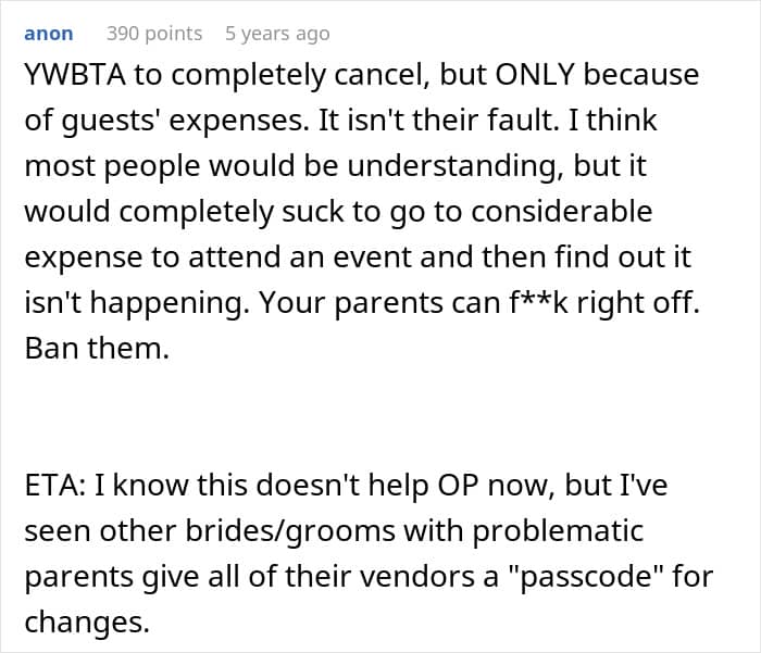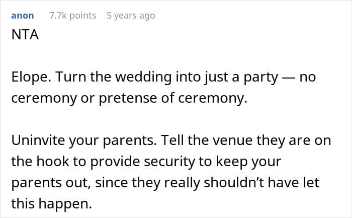 As their big day approached, the fiancés discovered that their parents had secretly changed key plans — including the guest list and menu — without their consent. So they made a post on Reddit, asking everyone to weigh in on the drama and help them determine whether their reaction was appropriate.