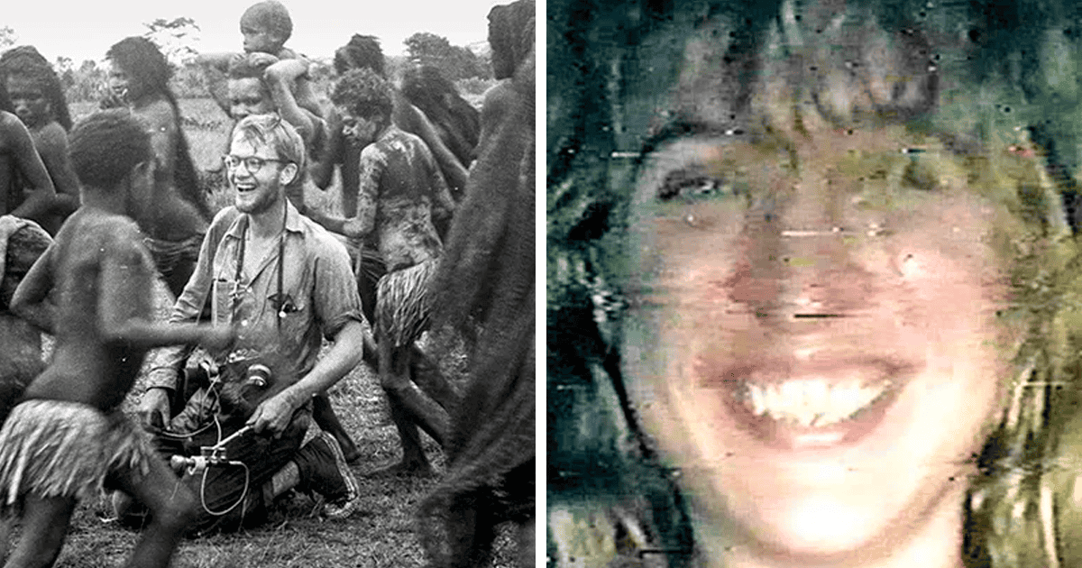 This photograph shows a 23-year-old Michael Rockefeller, son of the New York governor, trading with members of the Asmat tribe in New Guinea in 1961. It is one of the last known images of him before he vanished. Days later, his catamaran capsized, and he was last seen attempting to swim for the distant shore. While officially declared d**d from drowning, persistent rumors and later investigations suggest he made it to land only to be unalived and possibly cannibalized by tribesmen, a grim and unresolved end to his anthropological expedition.