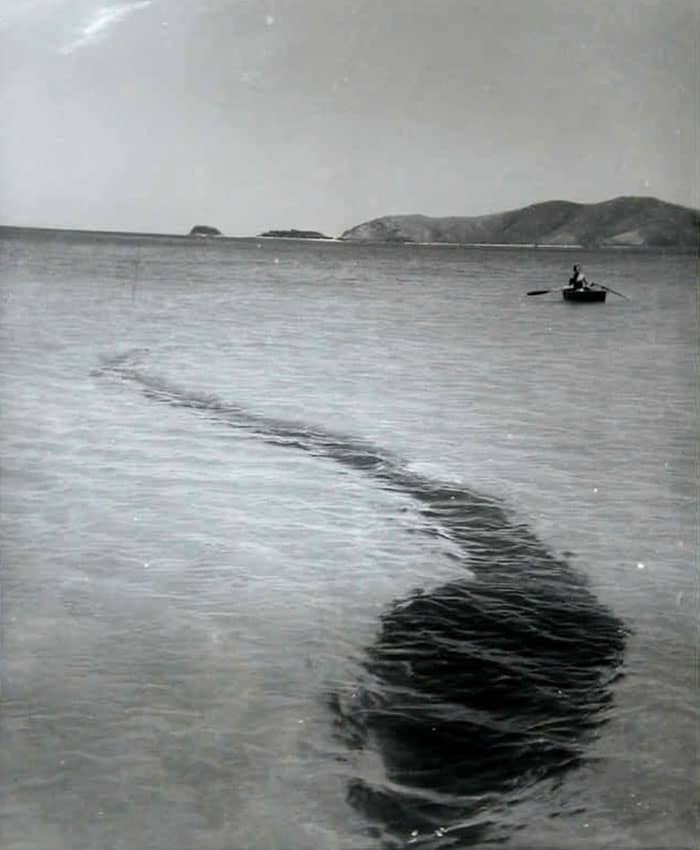 In 1964, photographer Robert Le Serrec was boating off the coast of Hook Island, Australia, when he and his family spotted a massive, tadpole-like creature in the lagoon below. He captured a series of photographs of the strange entity, estimated to be around 80 feet long, before it opened its mouth and swam away. The resulting image, taken long before the age of digital manipulation, has become one of the most famous and baffling “sea monster” photos ever taken, with no definitive explanation to this day.