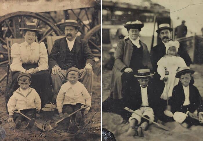 Discovered in a collection of Victorian-era photographs, this series of images documents the vacations of a single, unidentified family in the English seaside town of Margate. Taken over several years, the photos chronicle the family’s life, showing the children growing older and a new baby sister appearing. Aside from the name of the photographer in the background of one shot, there are no clues to their identities, leaving behind a charming but completely anonymous family album that captures a life story we will likely never know.