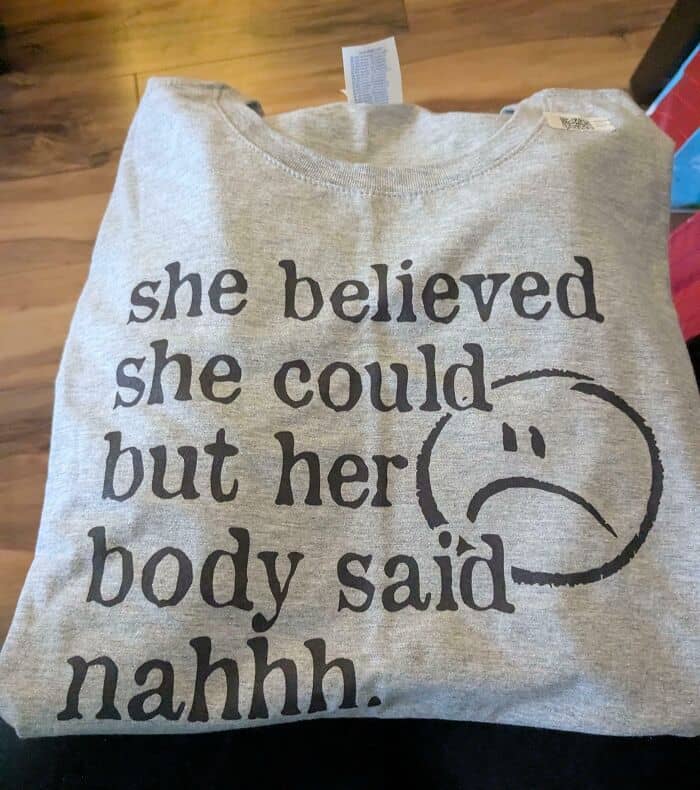 I cope through humor. I think the shirt is hilarious. I am more than aware that my body is a hot mess.