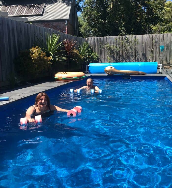 In their 34 years of marriage, my parents worked multiple jobs to support our family. Every summer, they would fill a small, round, inflatable pool with water from the garden hose for us kids. Yesterday, they had their first swim in their very own pool!