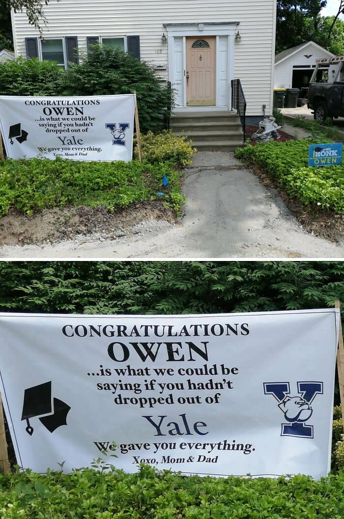 #91 My Parents Took Advantage Of The Graduation Sign Trend To Tease Me For Dropping Out