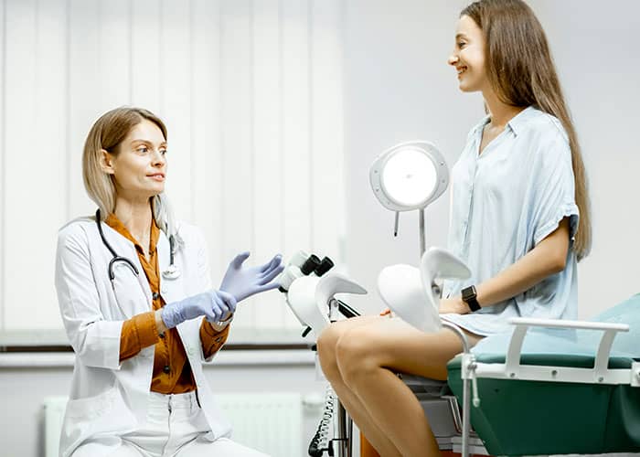 Lady doctors’ head tilts to the side, “Oh! It’s backwards [my cervix].”.