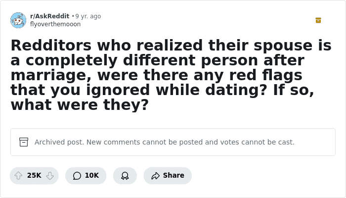 I don’t know if there were red flags until after we got married but after we got married, he became addicted to video games, irresponsible to the max, and really lazy. It’s been a struggle…