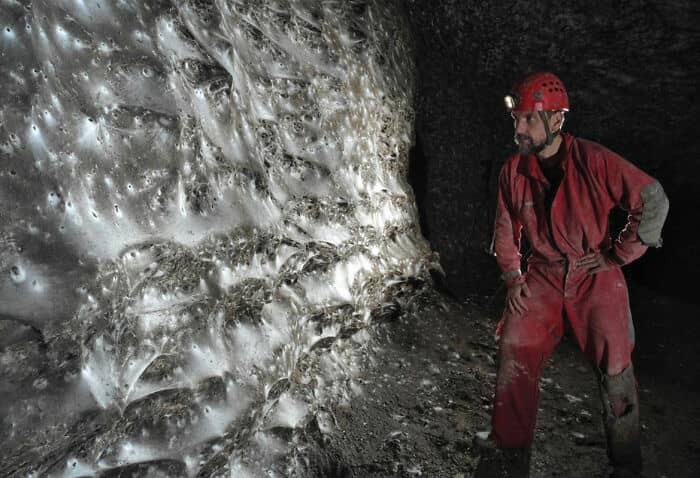 According to visitors, the air inside reeks of rotten eggs, which is the result of hydrogen sulfide gas rising from underground water and reacting with oxygen to form sulfuric acid.