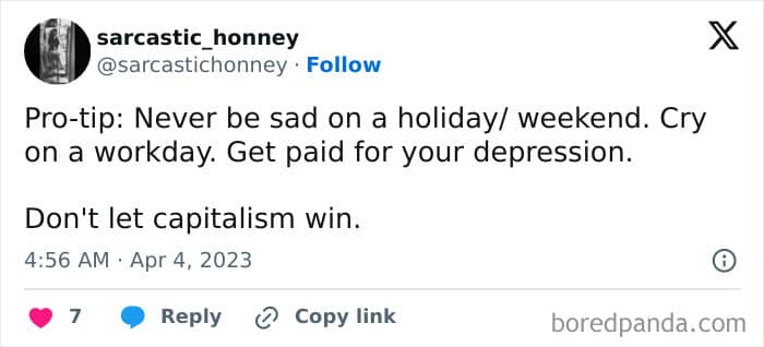 For instance, you could try to reframe some of the negative things that happen to you in a more positive light, looking for that silver lining. You should also consider scheduling actual laugh breaks per day, where you intentionally watch funny videos, shows, or standups, talk to your funniest family and friends, etc. Furthermore, you could try going to a laughter yoga session so that you’re in a more social setting (and also introduce more exercise into your life).