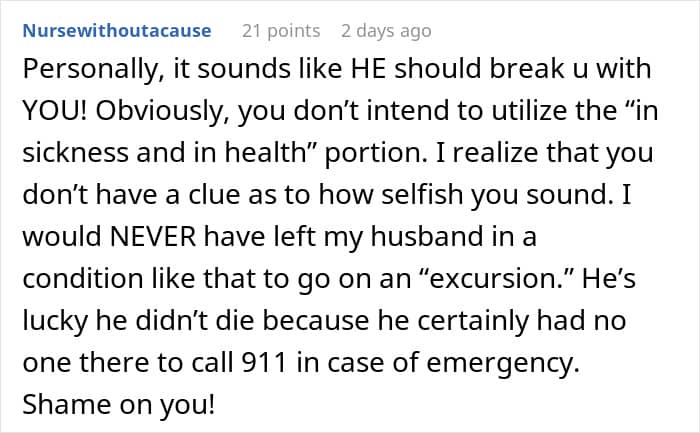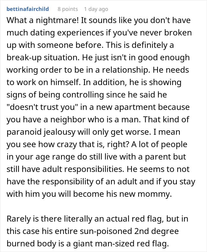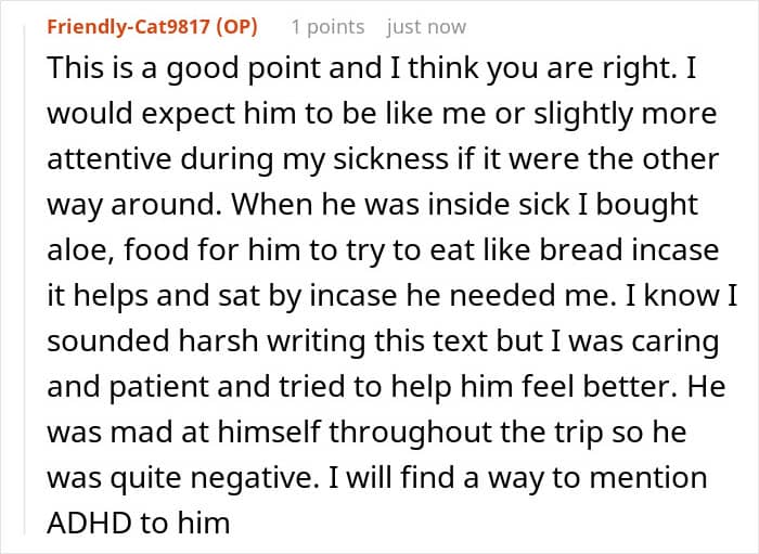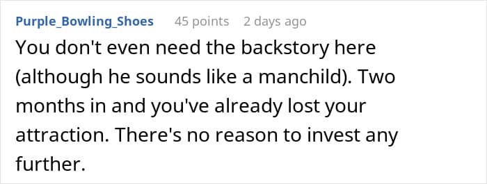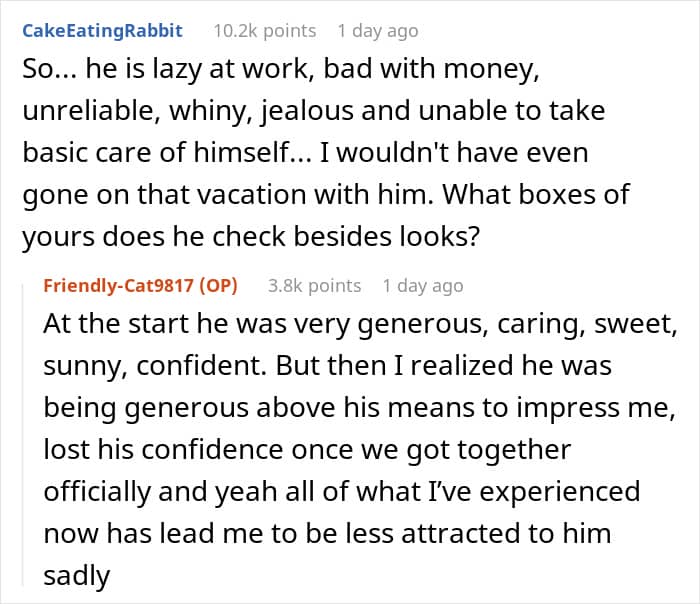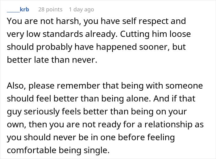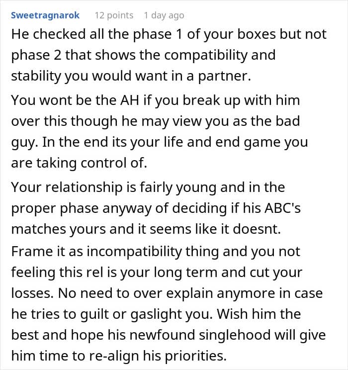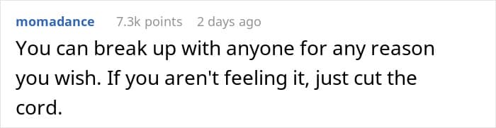 Now, she’s asking Reddit if ending things is the right choice or if she’s judging him too harshly.