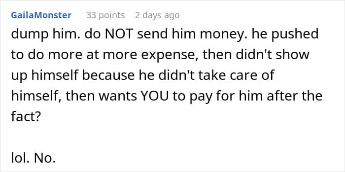That’s exactly the situation the woman from the story above found herself in. What was supposed to be a fun vacation with her new boyfriend turned into a wake-up call. Instead of enjoying their time together, she found herself dealing with his jealousy, poor self-care, money issues, and, ultimately, sun poisoning that left him too sick to participate.