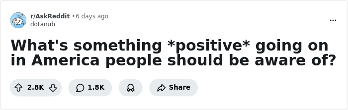 But just beyond the noise, there are thousands of smaller, quieter currents of progress and decency pushing things in the right direction. They don’t always make the headlines, but they are just as real. An online community asked a powerful, refreshing question: What’s something positive going on in America people should be aware of?