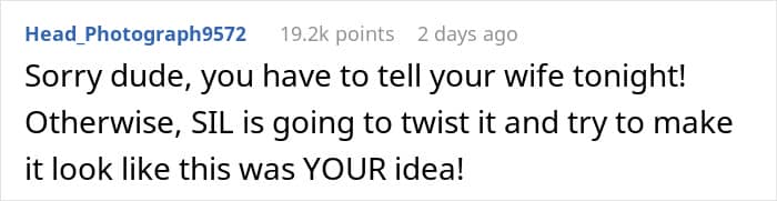 In-law issues can range from nonexistent to plain old infuriating, but when it comes to problems, most folks immediately imagine mothers and fathers-in-law. So one man asked the internet for advice after his SIL offered to sleep with him when his wife got pregnant. He naturally declined the offer and wondered if and how to tell his wife.