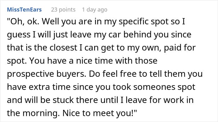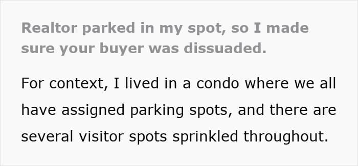 A homeowner had to deal with this headache when they encountered a realtor parked in their assigned spot