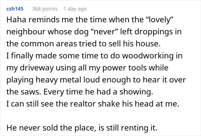 However, as the story indicated, raising the issue with the homeowners’ association was out of the question. In such scenarios, taking matters into your own hands, like the author did, may be the only way to diffuse the situation and garner instant results.