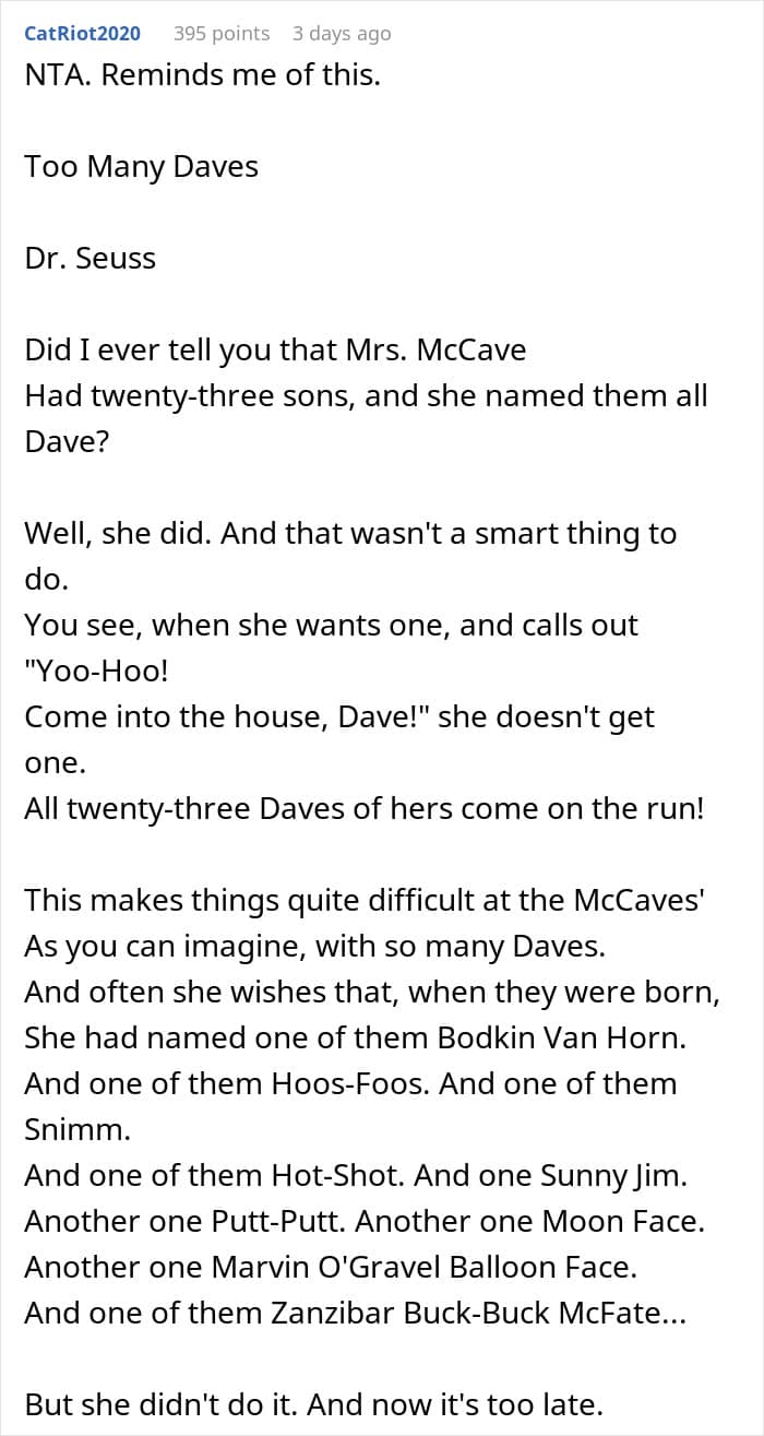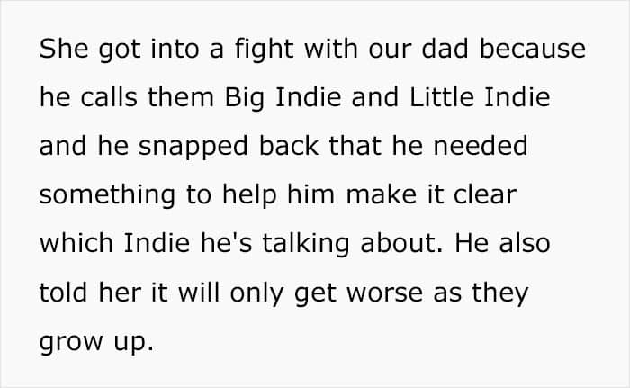 While picking a name, generally, doesn’t have the weight and importance that it once did, the sister’s decision is still deeply bizarre. After all, so many family gatherings are not going to be riddled with confusion. Even worse, just saying a name to one child or another might end up looking like a person is picking sides. Ironically, the two little girls involved are likely to be completely ignorant of the entire ordeal until they are much older. Perhaps for the best.
