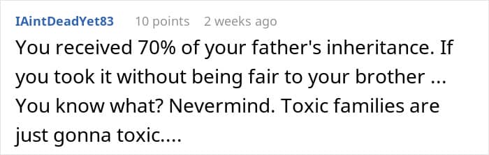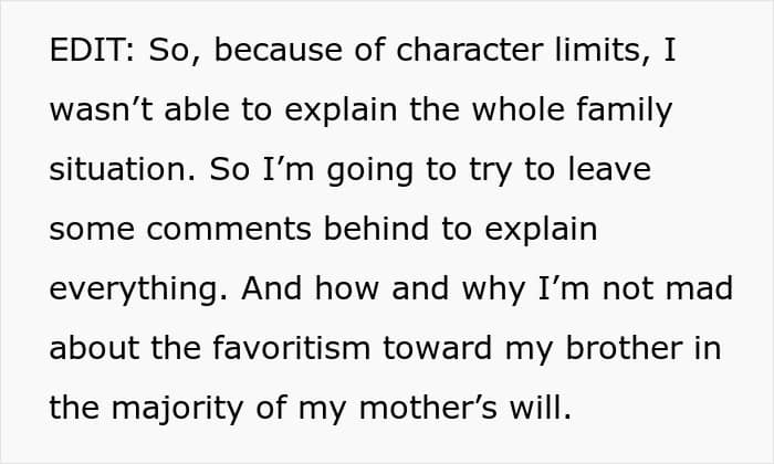 However, this story is peculiar, as the woman who wrote it made some edits later that really did change people’s equation. Perhaps this is a good cautionary tale for people who frequent these online groups, to not jump to conclusions, many readers were entirely on her side until she revealed the rather large sum of money she was about to inherit.