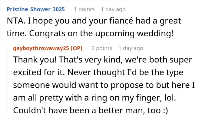 Others, however, agreed with his fiancé: “YTA in this instance for that insult at the end