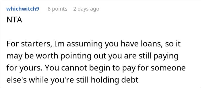 The woman in this story clearly empathizes with her brother’s situation, as she knows just how hard it is to pay for a college education. But because she managed to do it, she also knows that he can figure it out too. And, if he can’t manage to find the funds, he can still have a successful career without bragging about his alma mater.