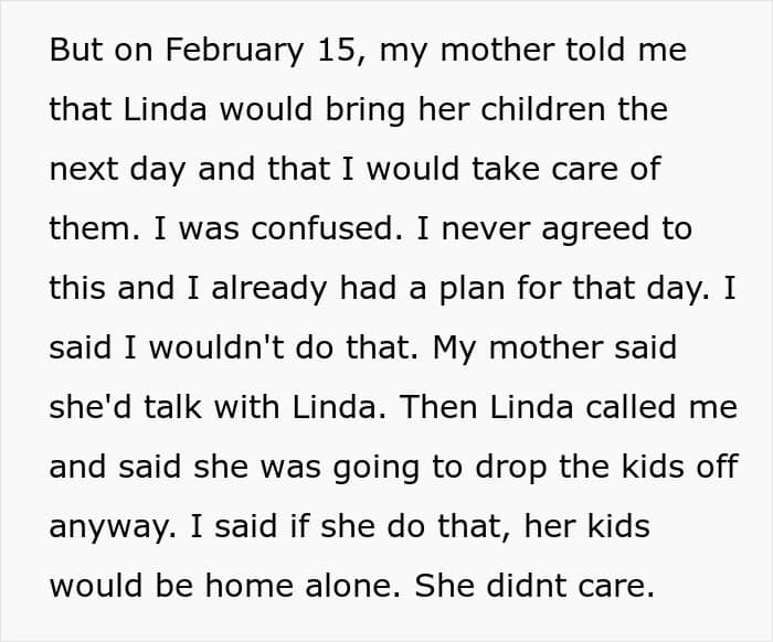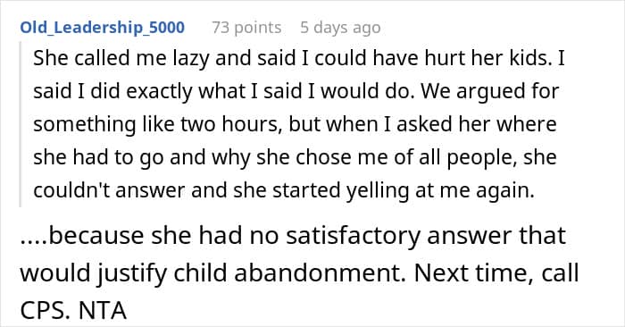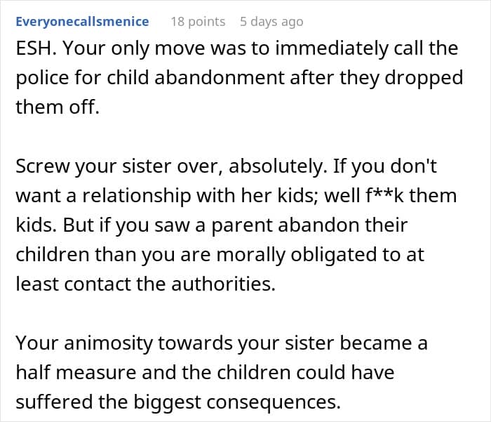 Family members can sometimes help, but it should never be done against their own wishes. That’s why after this woman repeatedly told her sister she wouldn’t babysit and left when the kids were still brought to her house, many people cheered. “Call CPS next time,” one netizen commented, highlighting how some parents falsely assume family members will look after their kids.