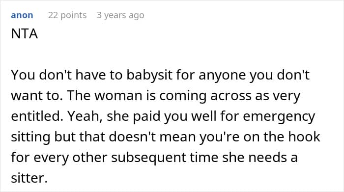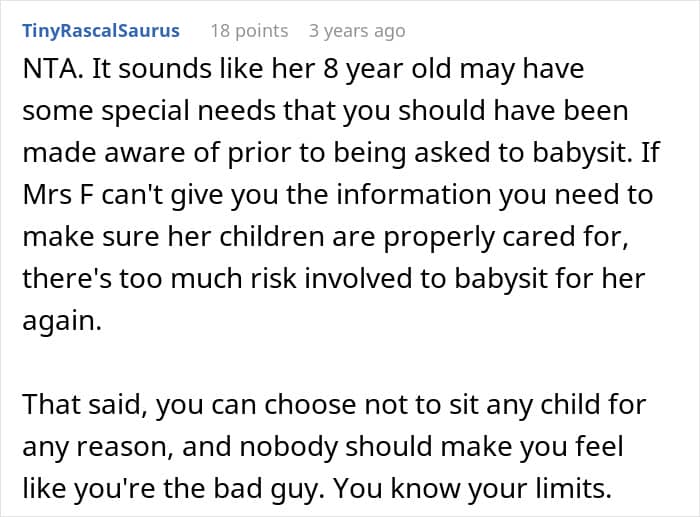 They also emphasize that teen babysitters should be respected as “someone else’s child”, underscoring that conflicts often arise when parents shift responsibility onto teens instead of acknowledging their own role or taking responsibility of their children’s behavior.