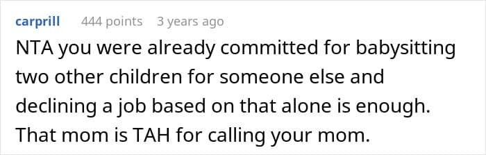 Netizens sided with the teen, agreeing he was not in the wrong for declining to babysit again. They emphasized that babysitting is a job, not an obligation, and that he had every right to say no especially after already committing to watch other children. Others noted that the mom should have disclosed behavioral challenges beforehand and taken responsibility for the damage instead of lashing out.