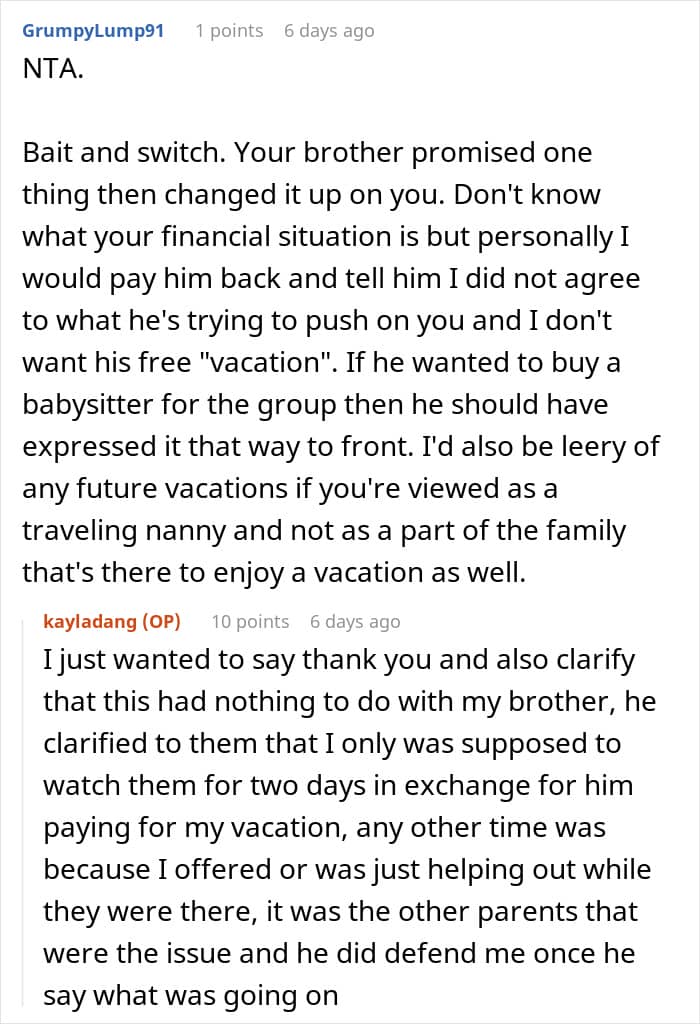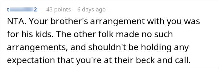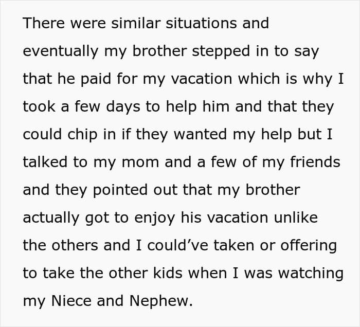 This woman recently shared how her brother’s friends tried to take advantage of her on their group vacation by leaving their kids with her without really asking. She wasn’t going to give in so easily, presenting them with a hard no, which inevitably caused tension for the duration of the trip.