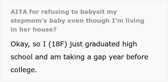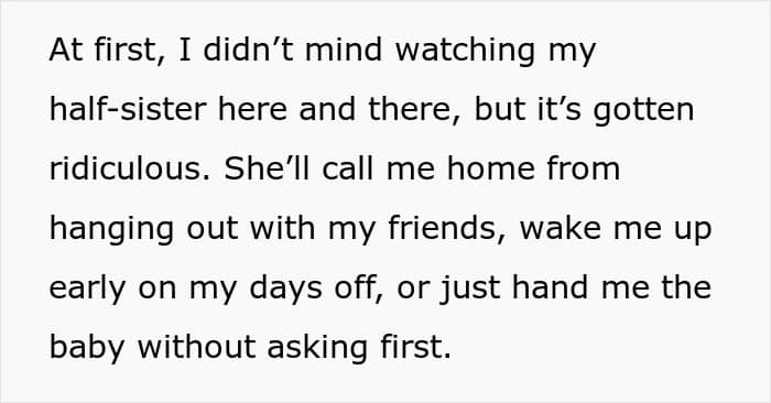 One young woman who knows just how frustrating having a new member of the family can be recently reached out to Reddit seeking advice. Below, you’ll find the full story of how her stepmother has taken advantage of her babysitting services, as well as a conversation with parenting expert and Founder of Pregnant Chicken, Amy Morrison.