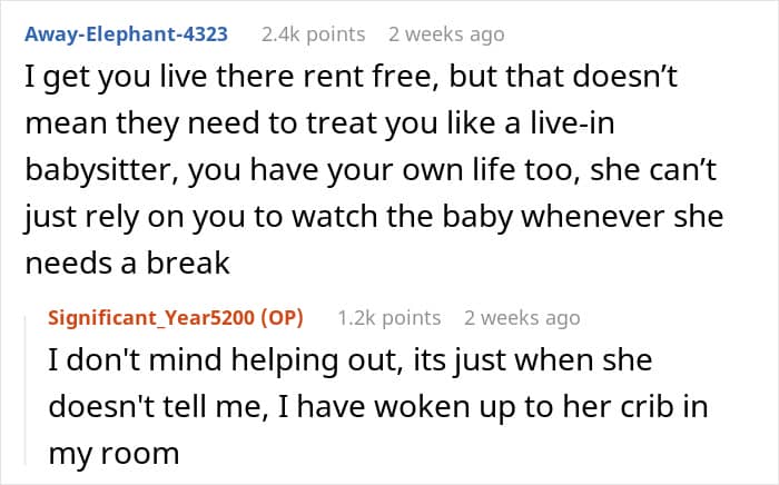 “It’s natural for families to pitch in during big life changes, like having a new baby, but there should be a balance,” Amy says. “In this case, the 18-year-old has her own life, plans, and responsibilities.”