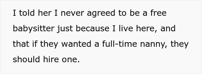 “It’s reasonable to expect that she can help out occasionally, but not be obligated to provide free childcare at all times, regardless of whether she is paying rent or not,” the expert continued.