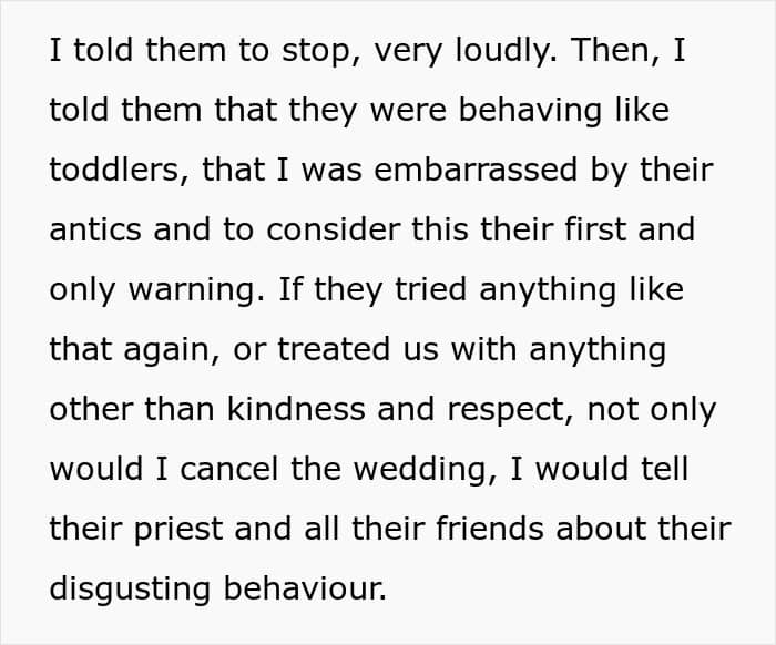 RELATED:You just don’t mess with someone’s wedding day—even if you’re family, it doesn’t give you a get out of trouble free card, so be ready to face the consequences