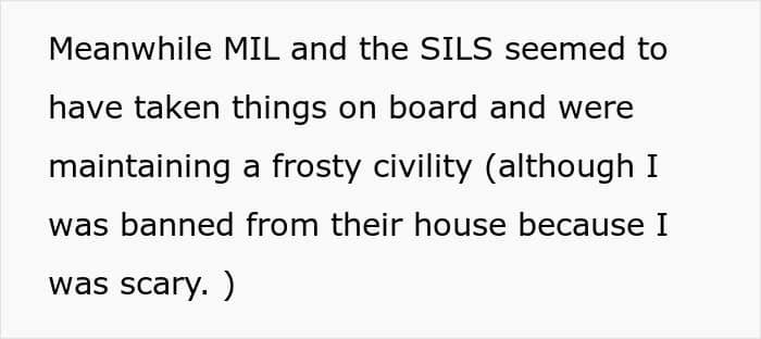 What is more, throughout this story, OP’s husband seemed reluctant to confront the family, or to even believe the things they were up to. At first, he was convinced nothing was really wrong and MIL did not really hate OP. But this was the moment the hubby stepped up and once the unsatisfied SIL approached him, she shushed her. You can imagine, in context, it was the middle finger equivalent. They had won.