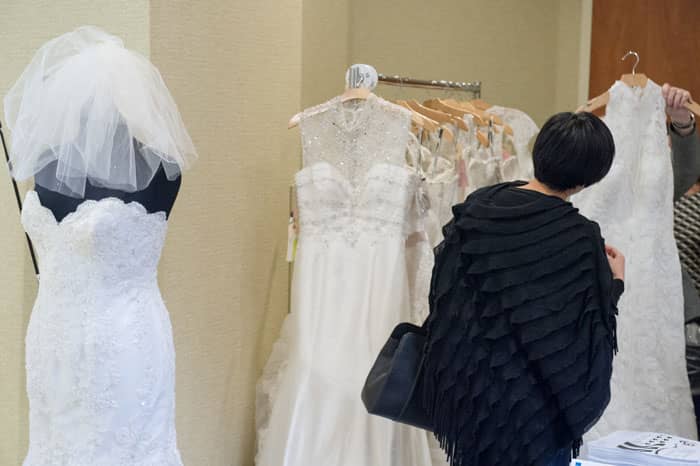 The bride’s plan was to redo the wedding aesthetic a bit by making the 4 blend into the sea of other wedding dresses