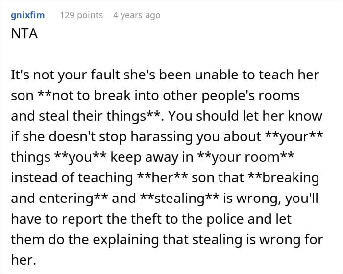 But after their roommate’s son snuck in to steal some, his mom decided it was their fault for keeping it in the house