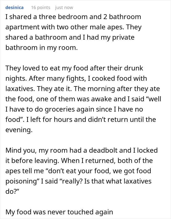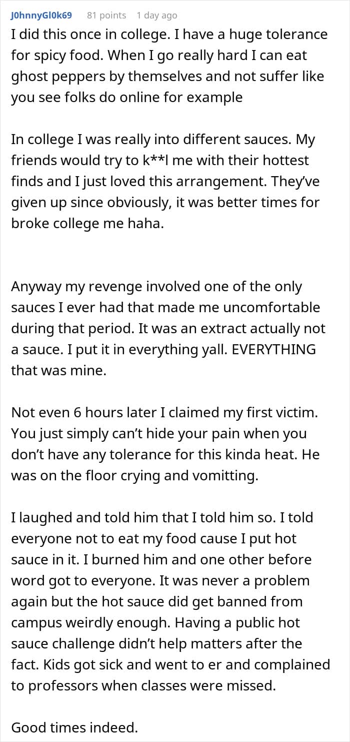 A man shared his story of petty revenge when he decided that he had enough with his roommate constantly stealing his food from the fridge. We reached out to the man who made the post via private message and will update the article when he gets back to us.
