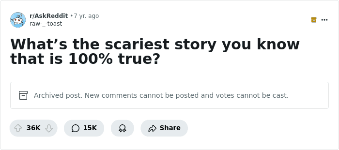 Not a specific story, but my dad was the coroner for our small county for a long time. He didn’t have a “coroner’s office” so a lot of the files and pictures were just kept in filing cabinets in our home since he was on call all the time. I would get into it as a teenager and look at some of the photos. When I say a picture is worth a thousand words….. There’s nothing scarier than just real death. Normal people photographed in detail who got into car accidents, drowned, o*****ses, various methods of s*****e, murders. I didn’t know the whole story for every photo, but every photo was haunting.