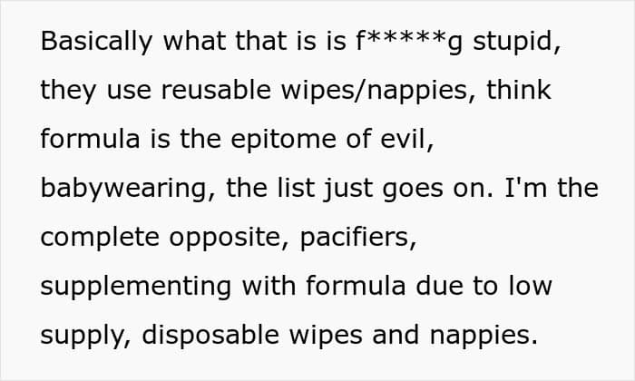 In addition to all the parenting styles, there’s another group of moms and dads, known as “crunchy” parents, whom the OP’s brother and her sister-in-law seemingly belonged to. They are the people who typically go for the natural option instead of the mass-produced one, be it nappies (reusable vs. single-use ones), food (breastfeeding vs. using formula), or even childbirth (hospital vs. home birth).