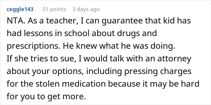 The problem here is not the placement of medicine. It’s the reason behind his desire “to get high.” Was it because of curiosity? Peer pressure? A yet unknown mental condition such as anxiety or depression? Low self-esteem? The root cause is for the parents to figure out and hopefully they can do so without continuing the family drama.