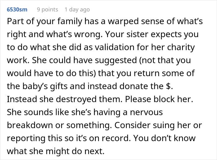 Her sister, on the other hand, believes she was wasteful and should have given some of that money to charity instead. To teach her a lesson, she destroyed all the gifts – ripping some to shreds. Her act of malice could now see her facing criminal charges.