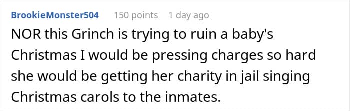 She destroyed her nephew’s Christmas gifts after accusing his mom of not doing enough for charity