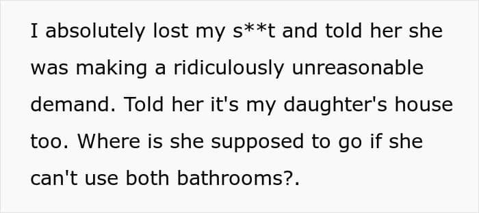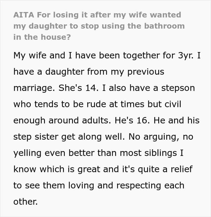 But this dad refused to comply with his wife’s demands after she wanted to ban his daughter from using their family bathroom