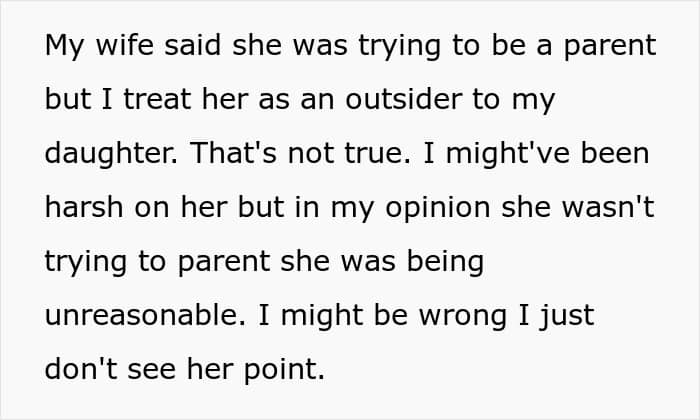 Many readers took the father’s side, noting that his wife’s request is unreasonable