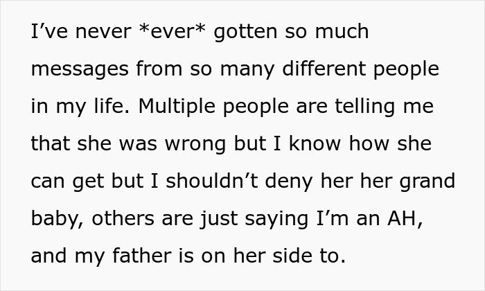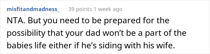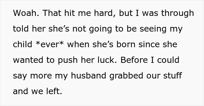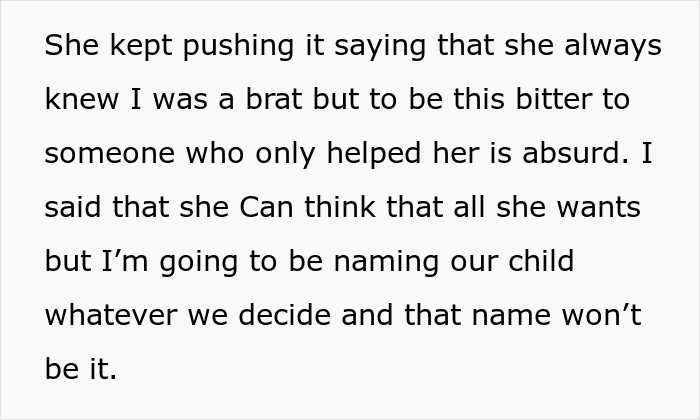 After the mom-to-be refused to bow down to her stepparent’s will, the woman went nuclear in the drama department. She showed her toxicity by trying to bring the pregnant woman down with her words. In short, the older woman tried to guilt her stepdaughter into giving in to her demands to name the baby.