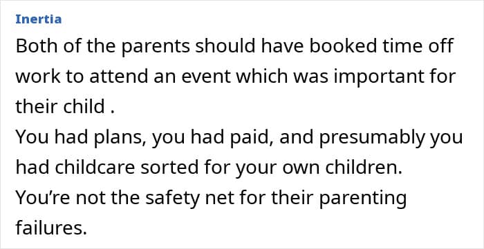 Many people online supported the author’s decision, believing the child’s parents should have been more organized in their planning