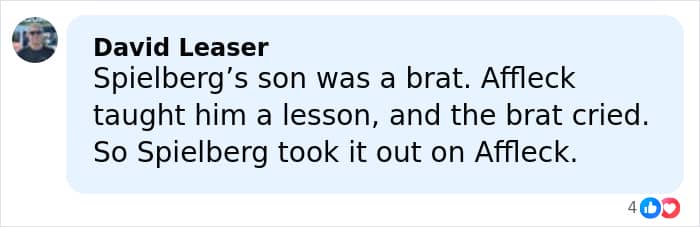 During an appearance on Stephen Baldwin’s podcast One Bad Movie, which was uploaded to YouTube on November 11, Mike Binder claimed that the alleged feud between Steven Spielberg and Ben Affleck originated from his 2006 film Man About Town.