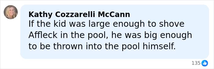 One netizen wrote, “If I had shoved a fully-clothed person into a pool when I was a kid, regardless of the age, and that fully-clothed person then threw me into the pool, my father would have tipped the guy and thank him for teaching me some manners.”