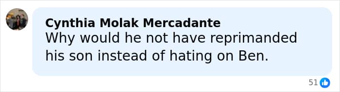 “Why would he not have reprimanded his son instead of hating on Ben? I am 100% on Ben’s side,” one social media user reacted.