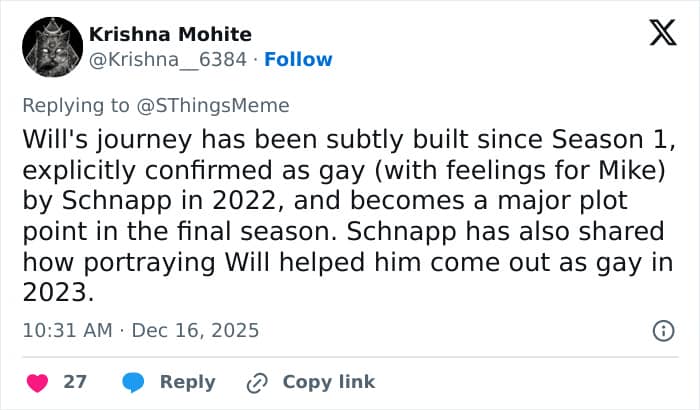 Others argued that the storyline was always part of the show, arguing that Will’s identity has been hinted at since Season 1, including past references from his father and emotional sequences in later seasons.