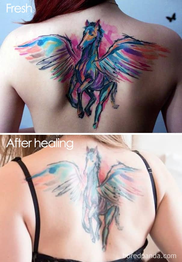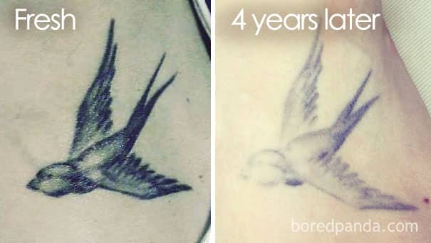 The color of the ink makes a big difference, too, as the lighter the ink, the faster it fades (remember that next time you’re thinking about getting one of those white ink tattoos!). Another thing to consider is your tattoo’s placement, as this can also influence the speed of fading.